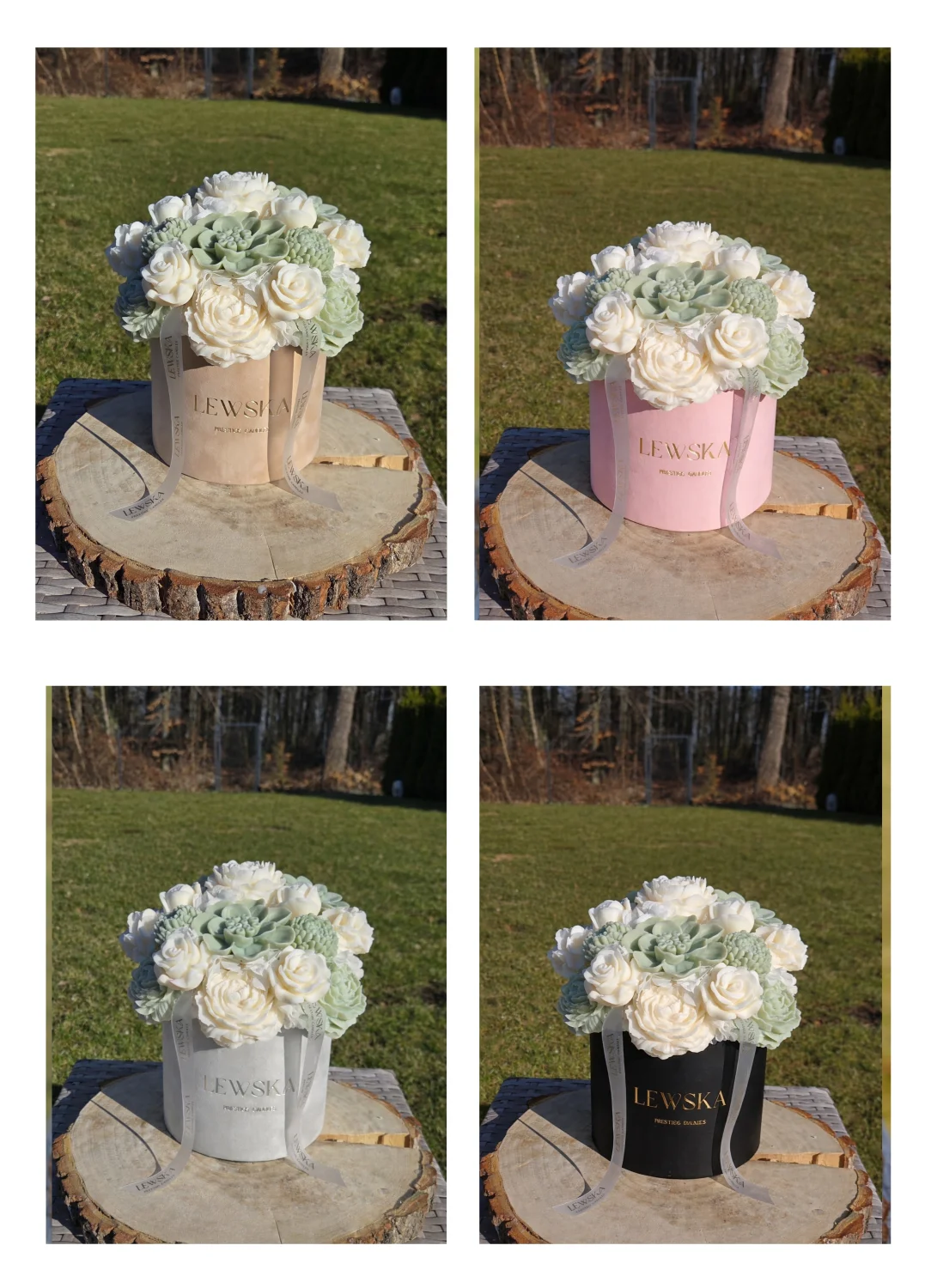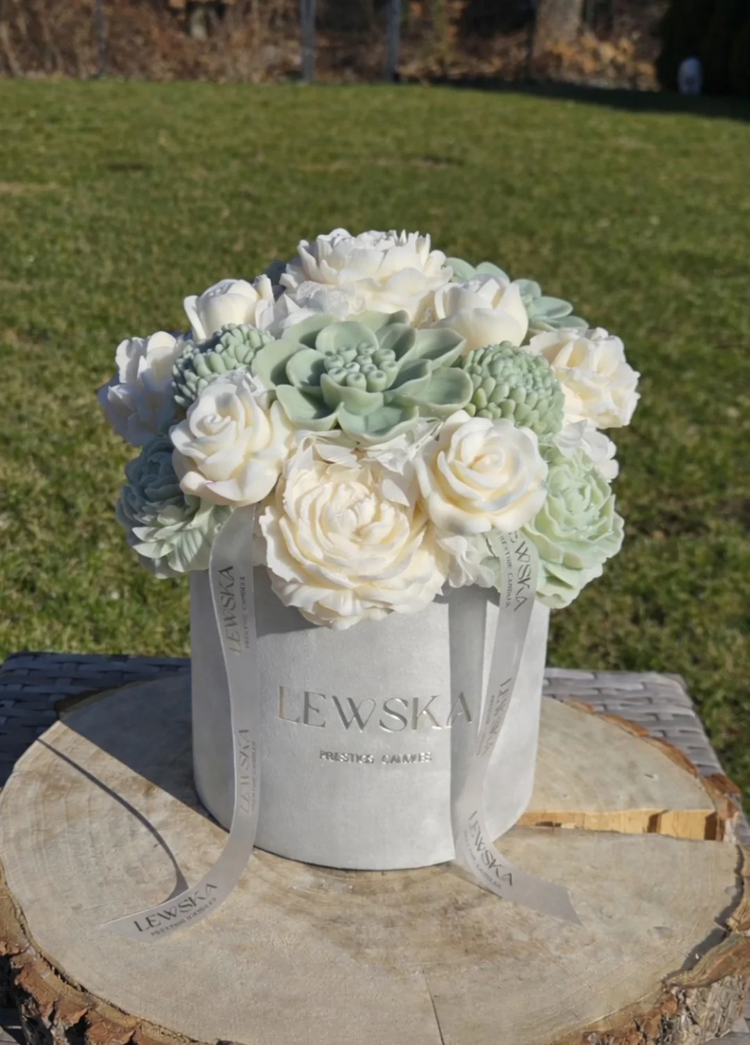 Box kwiatowe z wosku sojowego w kolorze bieli.- matcha
