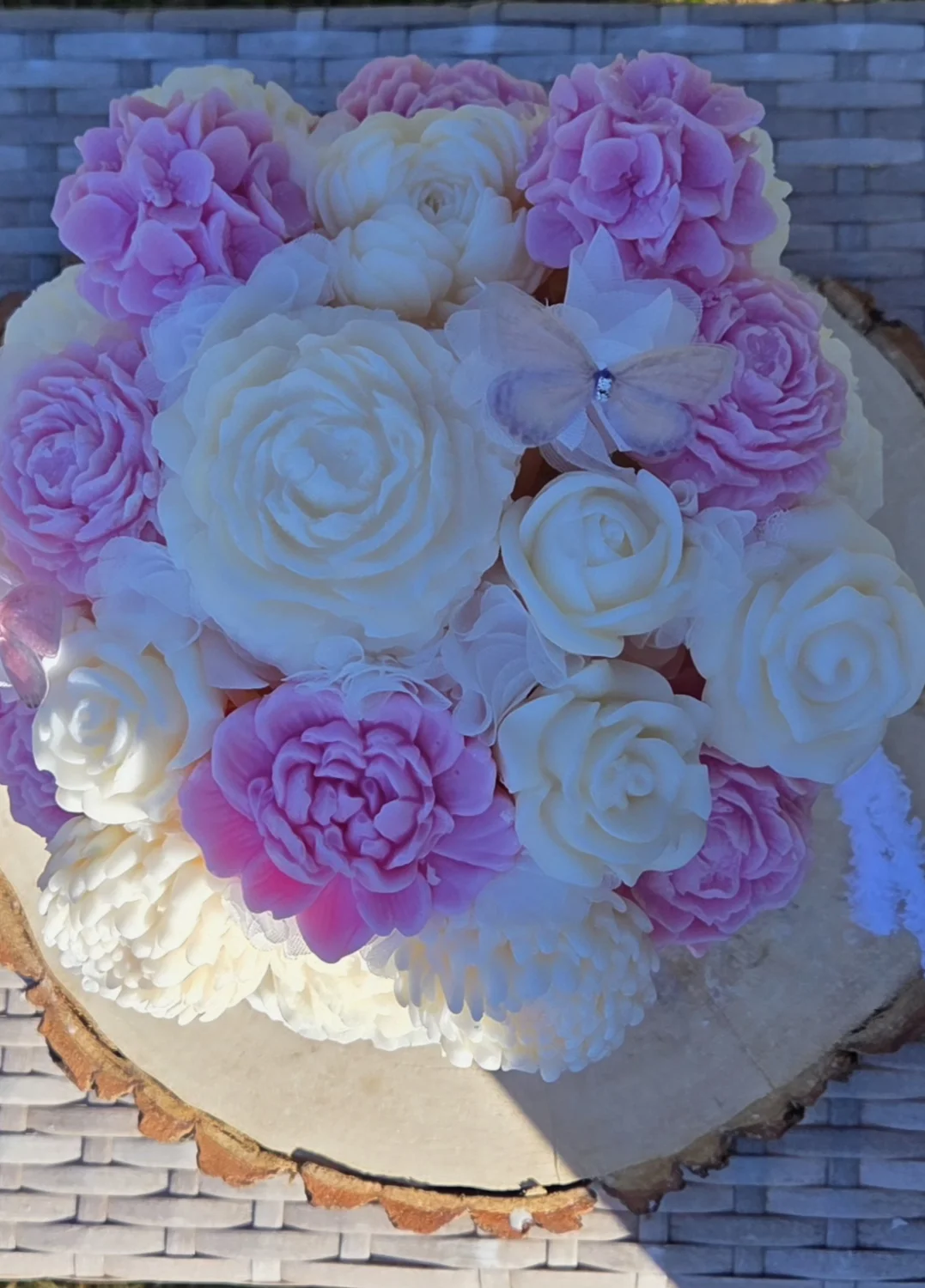 Box kwiatowe z wosku sojowego  są  w kolorze biało- rożowym