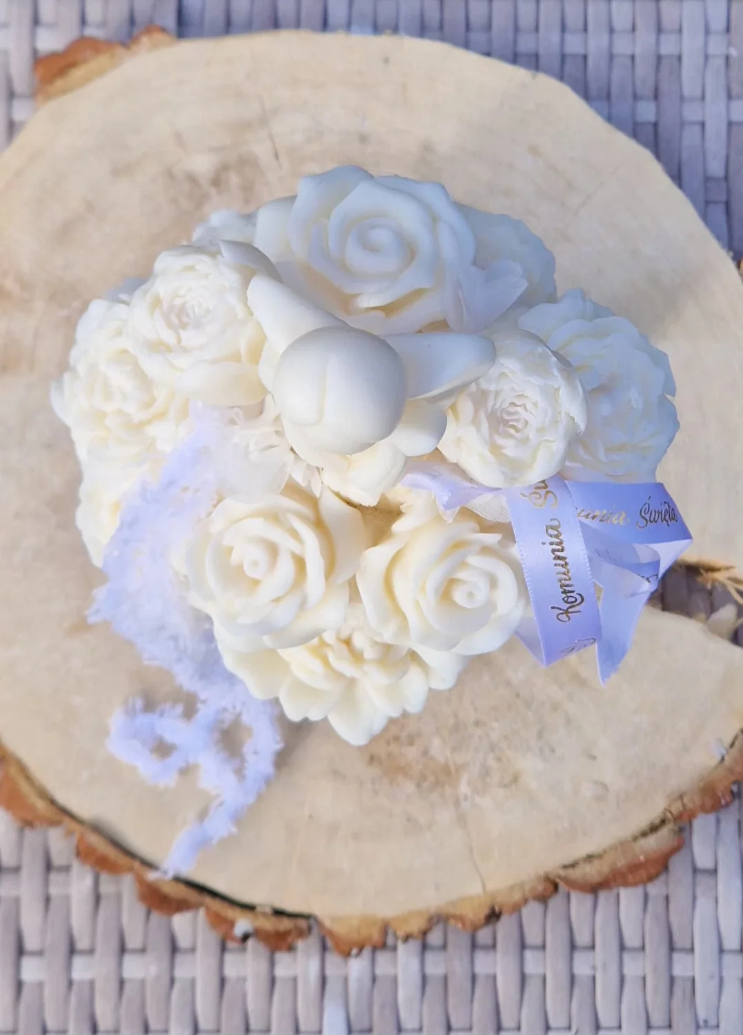 Kwiaty tworzę ręcznie z naturalnego wosku sojowego. Inspiruję się zapachami perfum, dlatego flowerbox nie tylko zachwyca wyglądem, ale też wypełnia wnętrze subtelnym, eleganckim aromatem. Możesz wybrać zapach, który najbardziej pasuje do dziecka lub charakteru uroczystości.