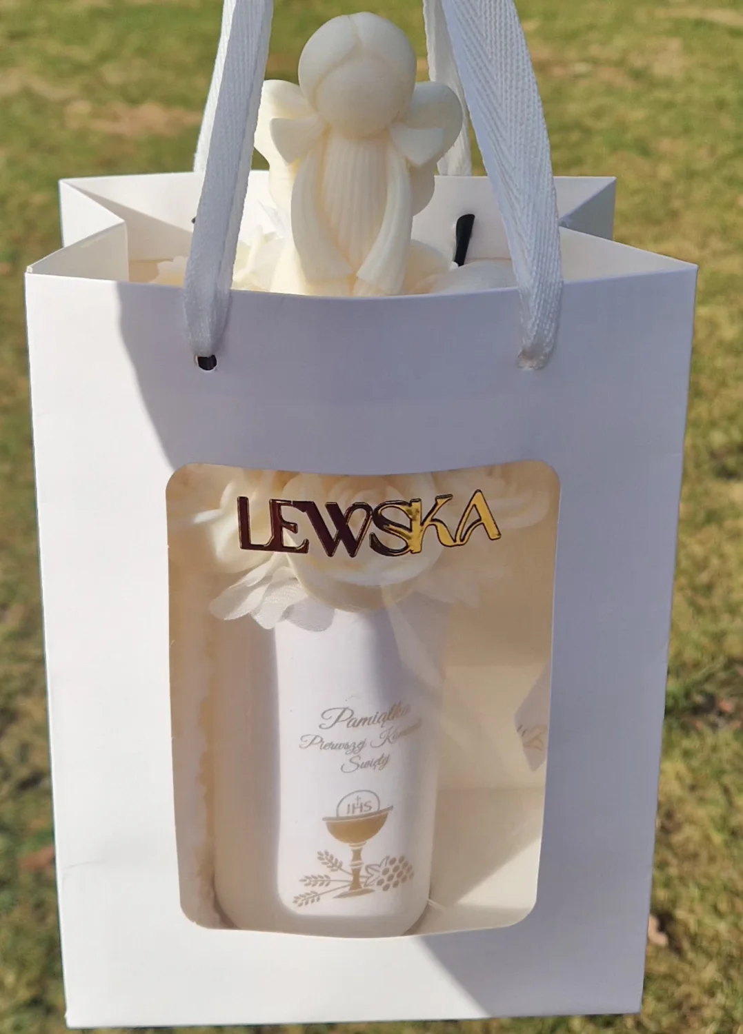✨ elegancką wstążkę z napisem „Komunia”