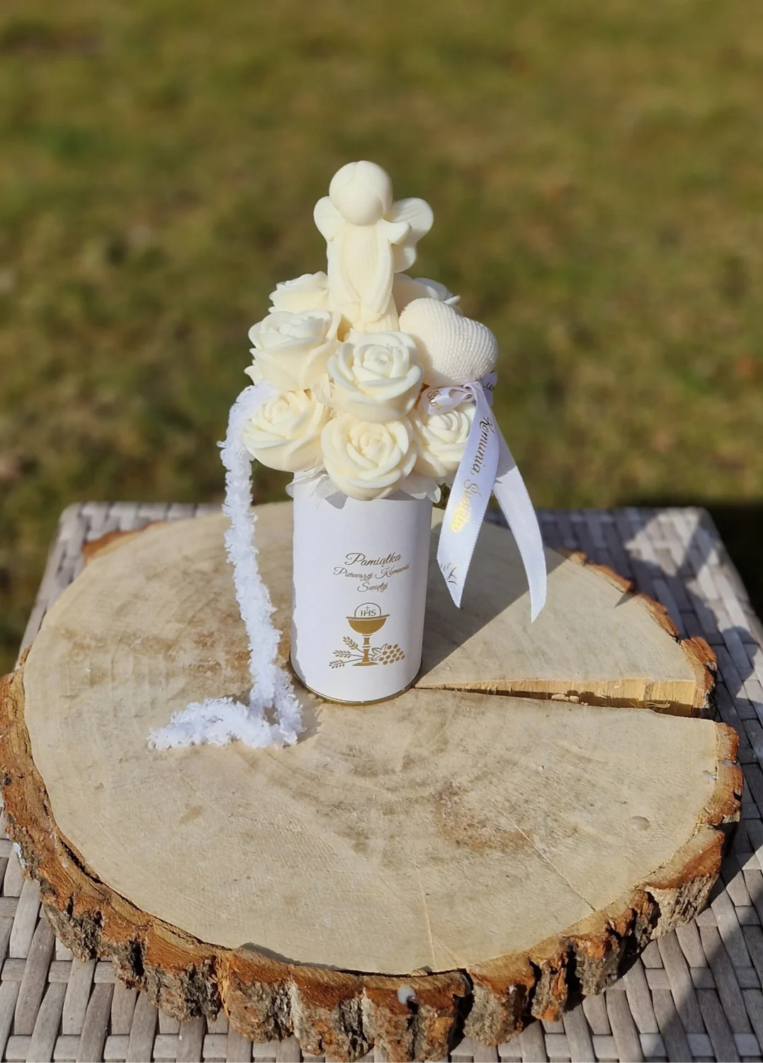 Szukasz wyjątkowego prezentu na Pierwszą Komunię Świętą? Ten bukiet to coś więcej niż ozdoba – to elegancki, pachnący upominek, który zostaje z obdarowaną osobą na długo.