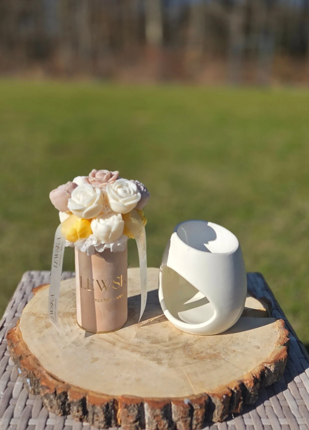 Woskowe kwiaty wypełniają przestrzeń aromatem relaksu po umieszczeniu w kominku zapachowym — tworząc atmosferę przytulności i harmonii. Każdy element jest tworzony z najwyższą dbałością, dlatego każdy bukiet jest niepowtarzalny i może się nieznacznie różnić od prezentowanego na zdjęciach — to właśnie dodaje mu wyjątkowego charakteru.