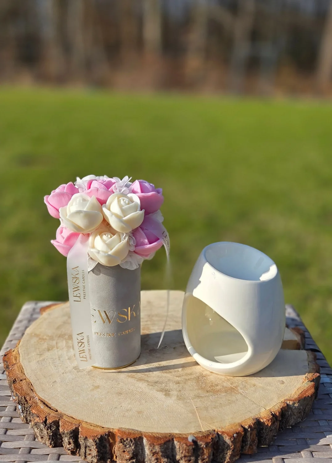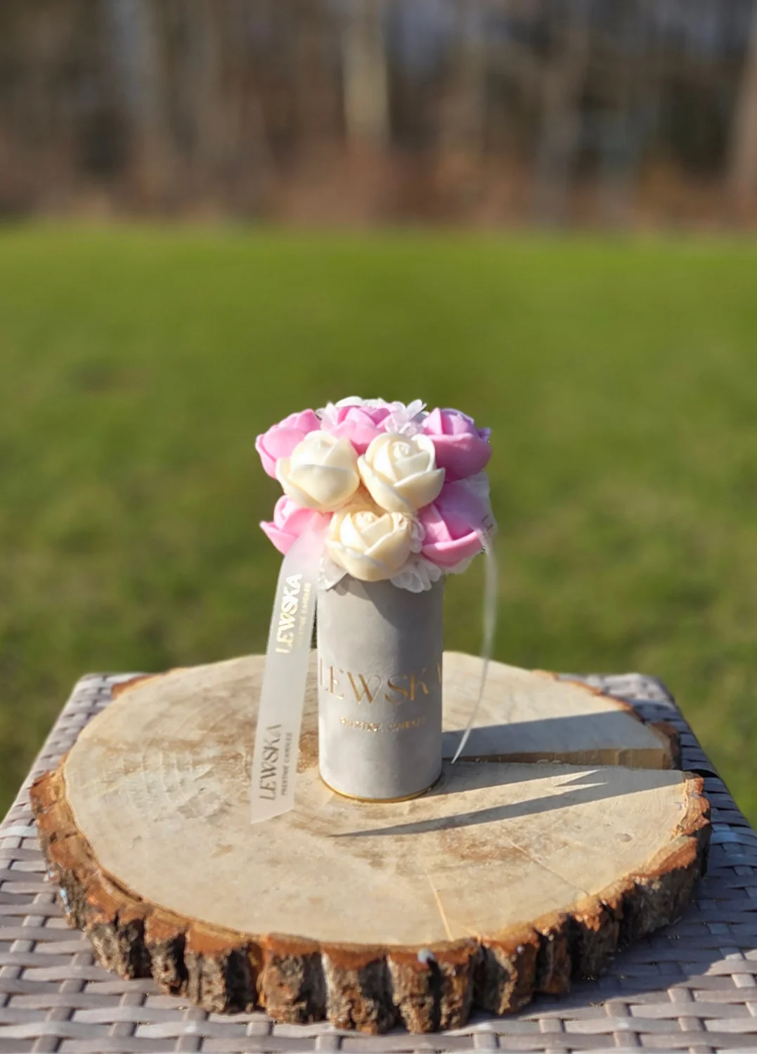 Szukasz prezentu, który łączy w sobie piękno dekoracji i zapach, który tworzy klimat w domu? Mój bukiet sojowy w kolorze szarym to ręcznie wykonana, elegancka kompozycja kwiatów róż z naturalnego wosku sojowego w odcieniach bieli i matczy— idealna jako pachnący prezent handmade lub wyjątkowa ozdoba wnętrza.