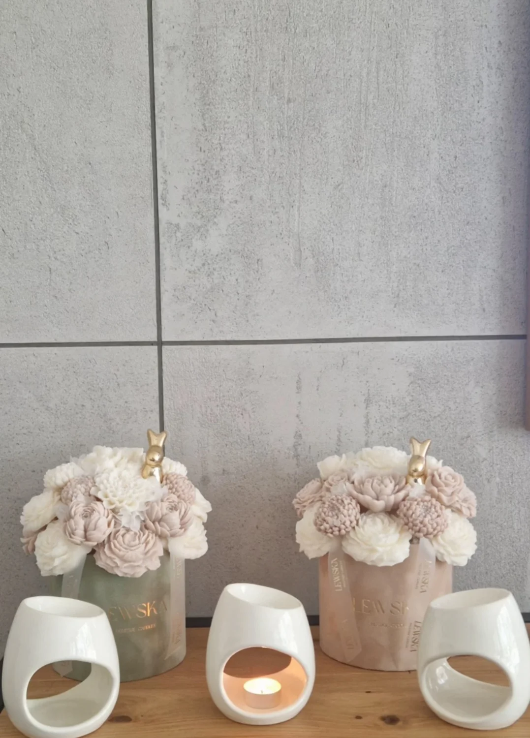 W połączeniu z moimi woskami zapachowymi tworzą mały rytuał relaksu – ciepło świeczki, powoli topiący się wosk i zapach, który otula całe wnętrze.